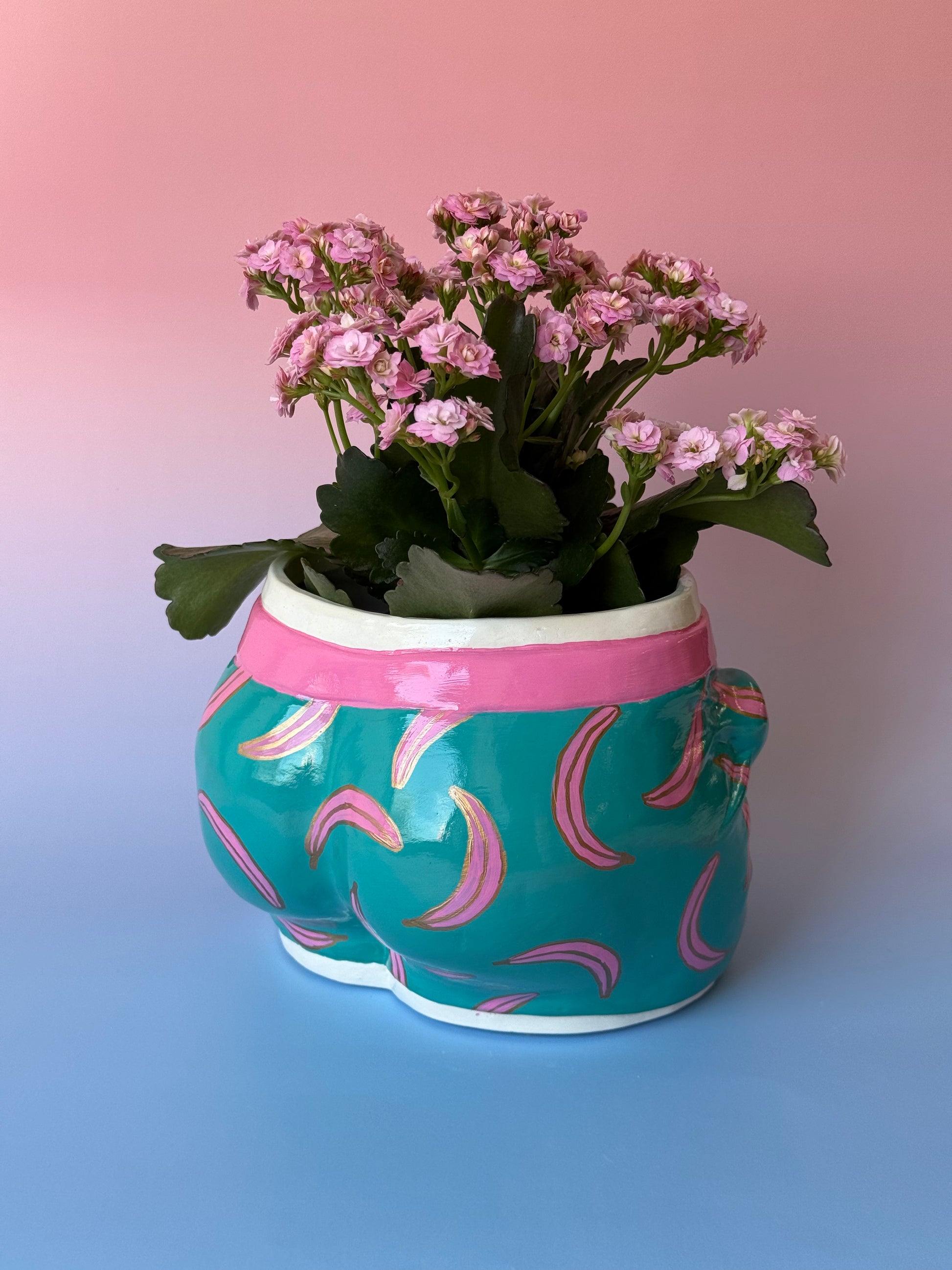 The cachepot is painted by hand, so each piece will be different. Please note, it is a decorative item and does not tolerate moisture. Do not fill the pot directly with soil and do not plant the plant directly in the pot, use an additional plastic pot.